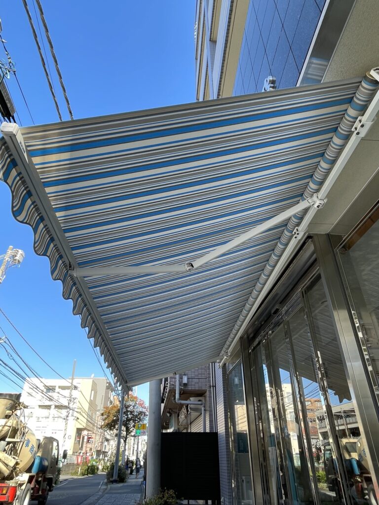 ショールームのオーニングのキャンバス交換をしました。