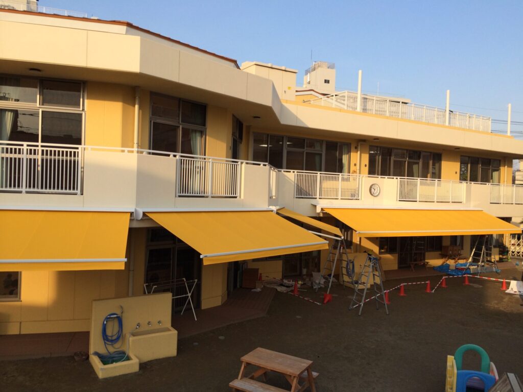 オーニング(Awning)とは、建物の外壁や窓の上などに取り付けられる可動式または固定式の日よけ・雨よけです。